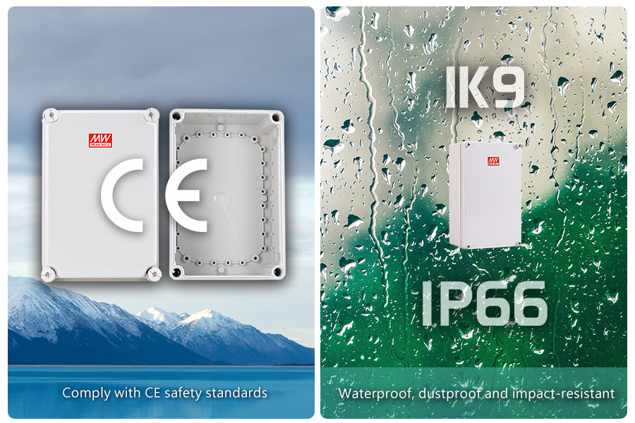 The distribution box (junction box) is one of the main auxiliary materials required by electricians for wiring and distribution. It mainly protects the adapter components sealed in the box from being affected by dust or moisture. The new TJ-AG series adapts square head bolts and high-end PC (Polycarbonate) plastic material, which can avoid metal corrosion issues. Due to its outstanding flame-retardant rating (UL 94 5VA), it is suitable for environments under ambient temperatures of -40°C to +80°C. In addition, it has IP66 rated enclosure with a complete sealing design; provides an excellent barrier and it is suitable for all kinds of dusty or humid environments. Coupled with the impact resistance grade of IK9 and its excellent UV resistance (certified by UL 746C), it can prevent rapid aging of the box and save up the maintenance and repair costs, while reducing the plastic waste to the environmental impact.