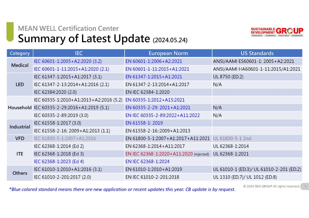 62368 ES PS LPS level and 61558 OVC 60335 list for MEAN WELL product